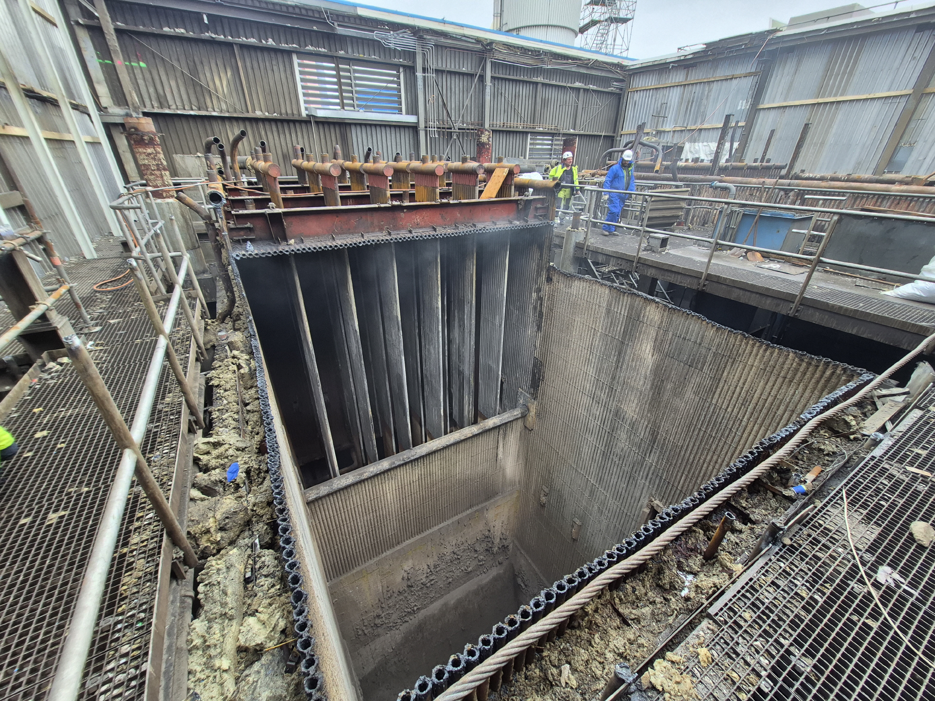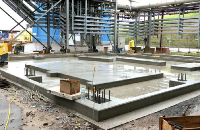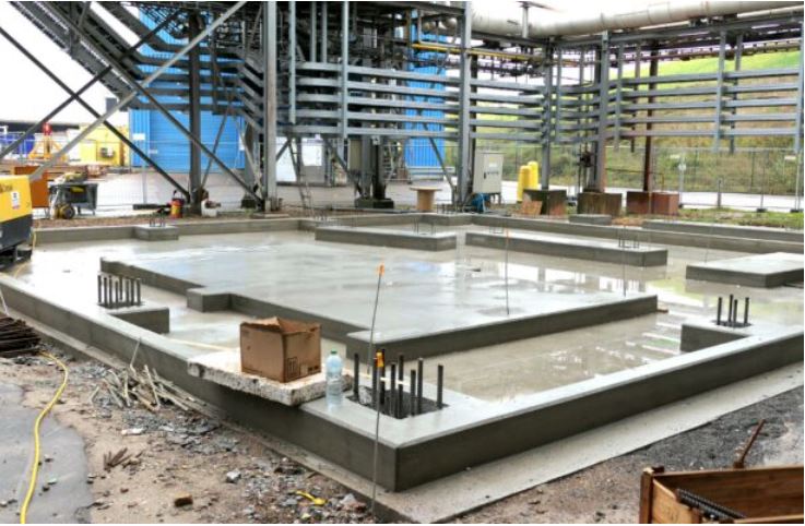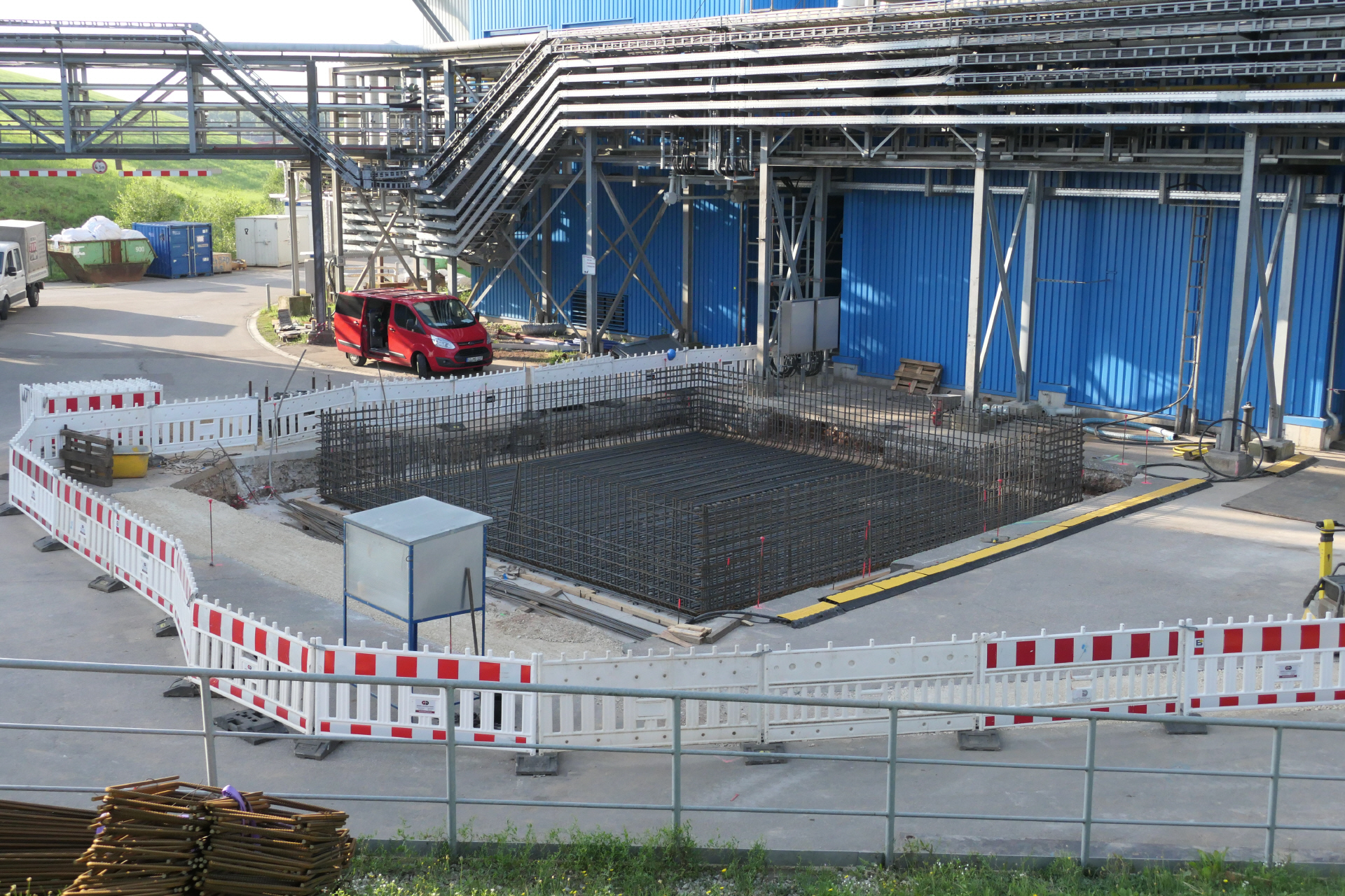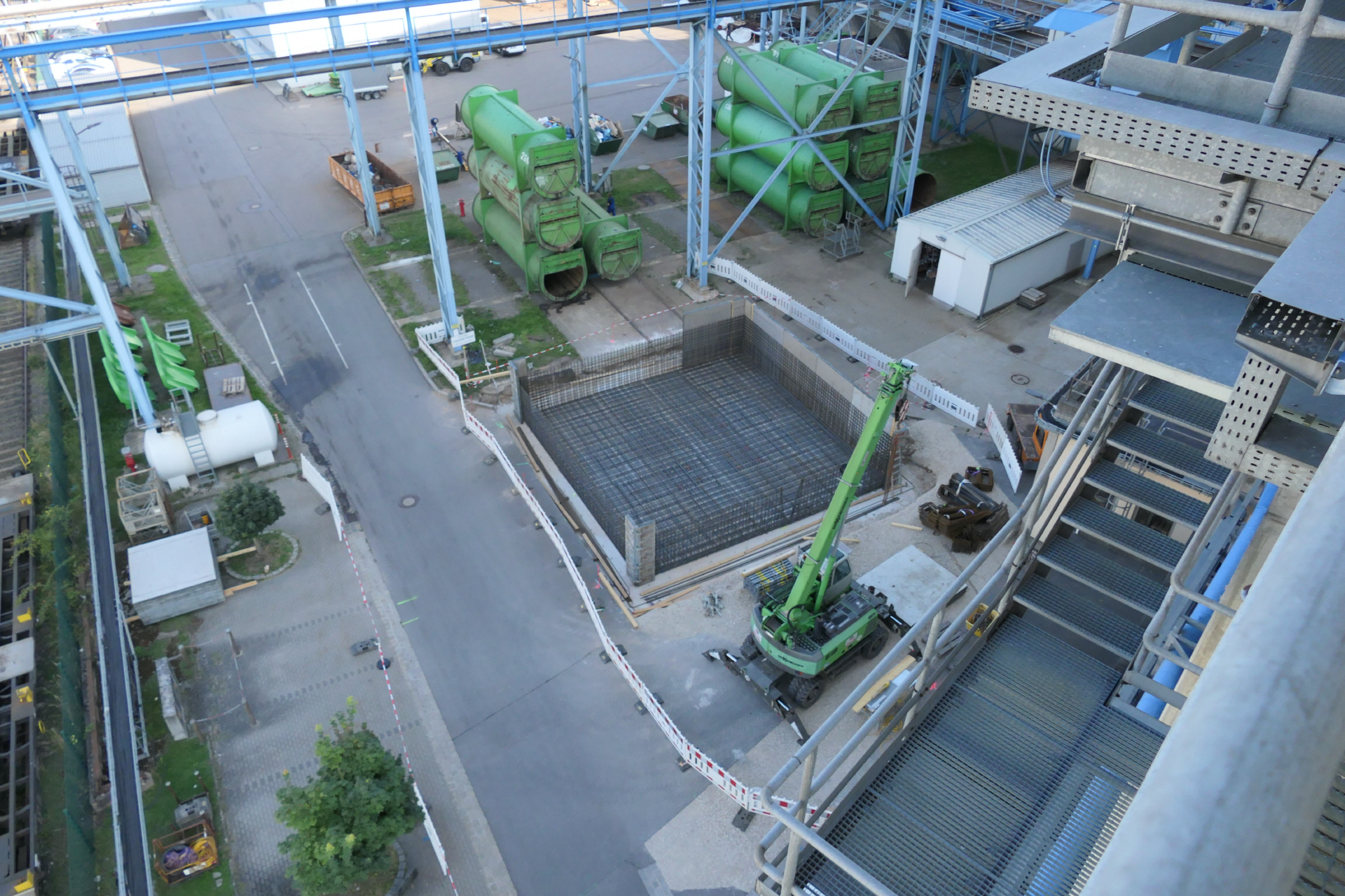 27. Oktober 2023 Die Bodenplatte für den Gewebefilter mit einer Stärke von fast einem Meter musste neu errichtet werden. Hierzu wurde bis zu 19 Meter tief gebohrt, um die Bewehrungsgitterkörbe einzulassen und zu betonieren. |