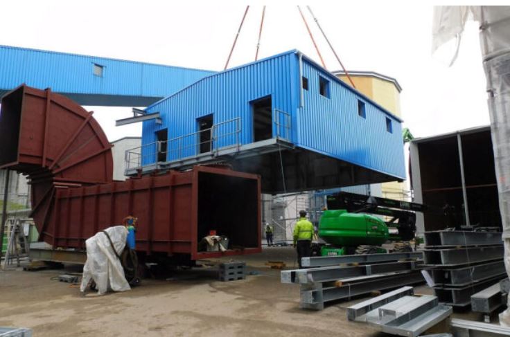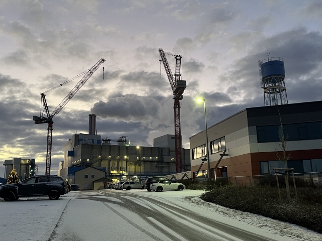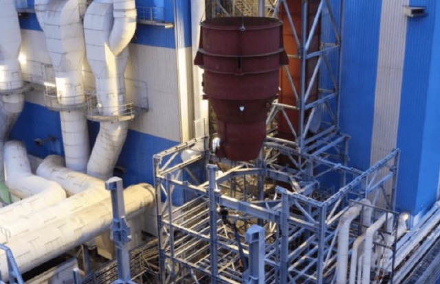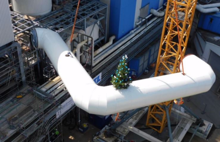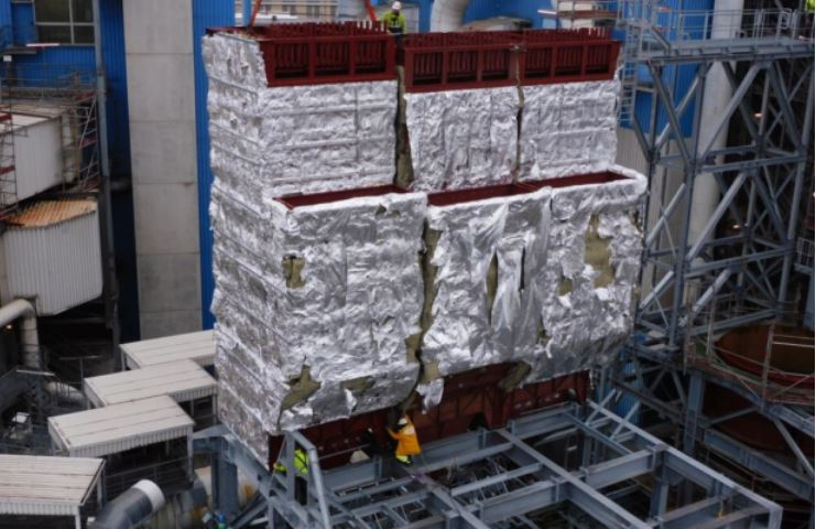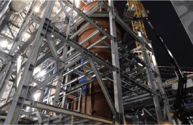 20. Dezember 2023 Hier sieht man gut, wie der Reaktor in das Stahlgerüst eingelassen wird. Es war eine ziemliche Herausforderung, die das Team mit Geschick gemeistert hat. |