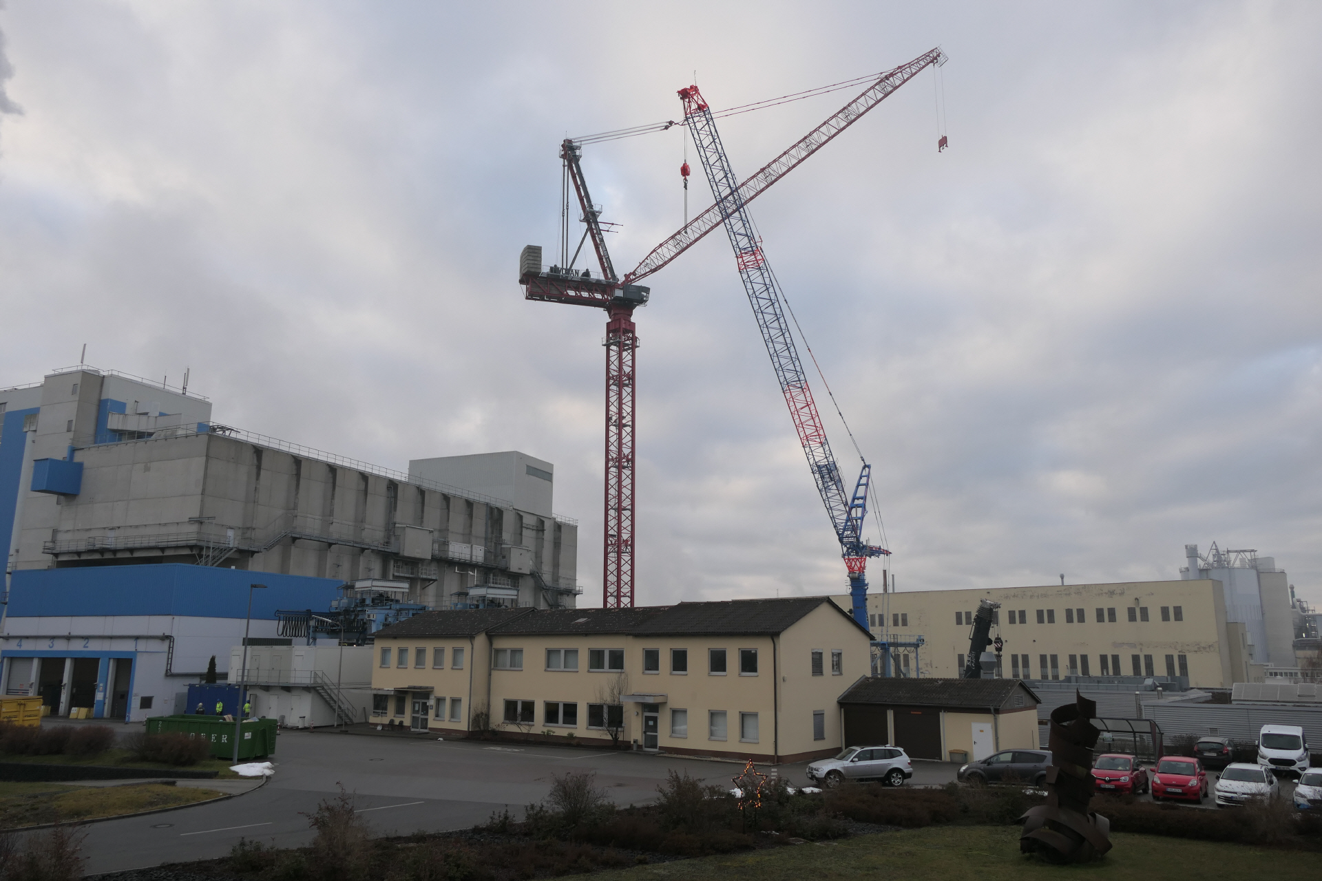7. Mai 2024 Die schweren Hubarbeiten an der neuen RGR der Ofenlinie 4 sind abgeschlossen. Der 60 Meter hohe Kran mit einer Ausladung von 40 Metern hat seine Arbeit verrichtet und wird abgebaut. |