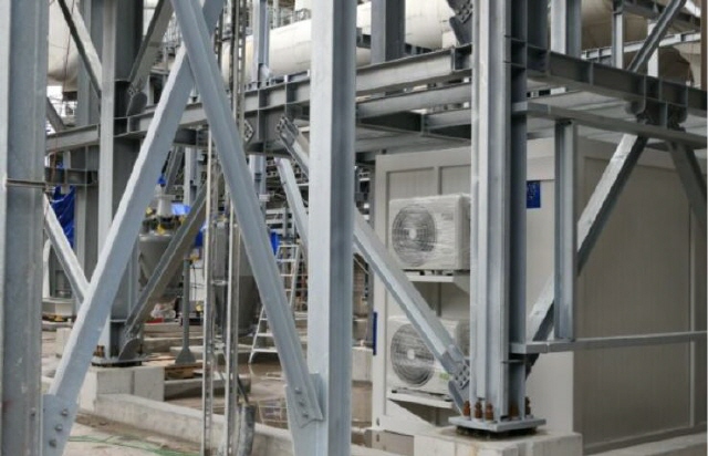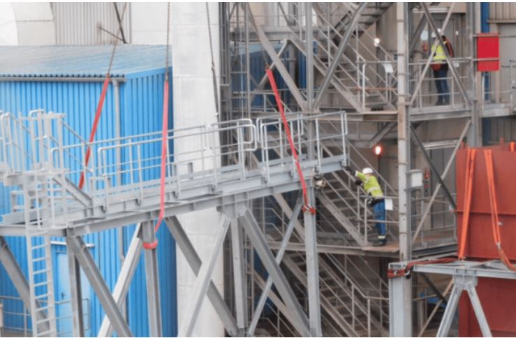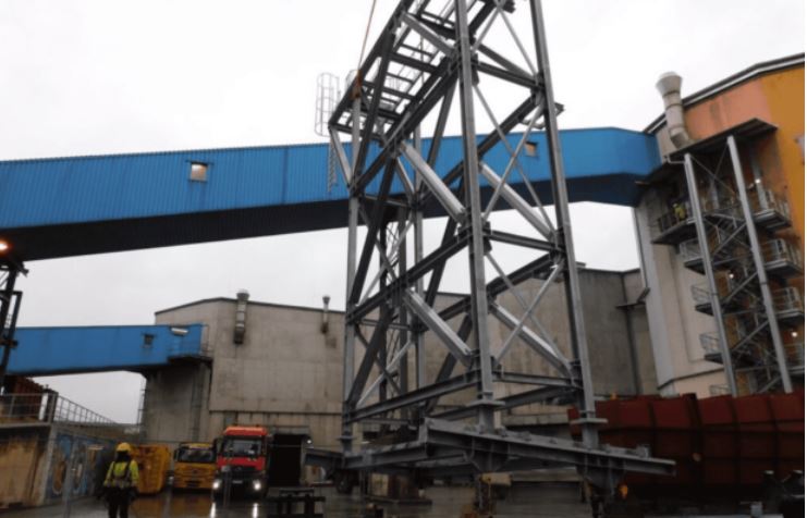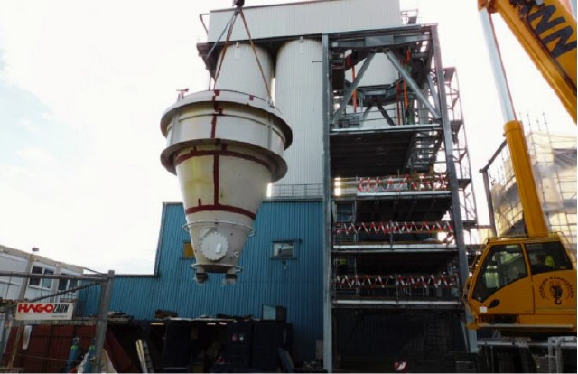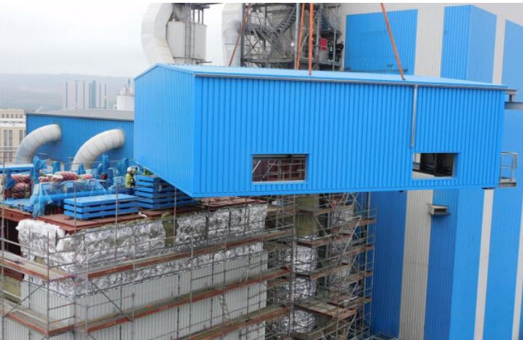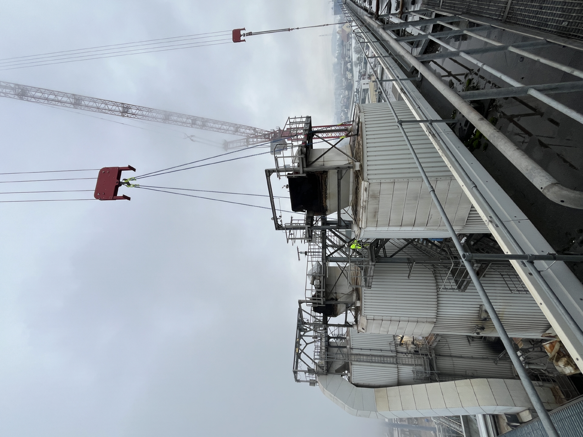 14. März 2024 Das Dach der Gewebefilterkammern trägt den Spitznamen „Penthouse“. Diese markante Struktur bildet den oberen Abschluss der Anlage und wiegt 27 Tonnen. |