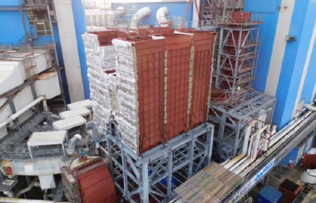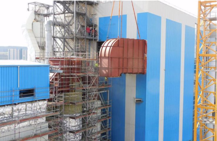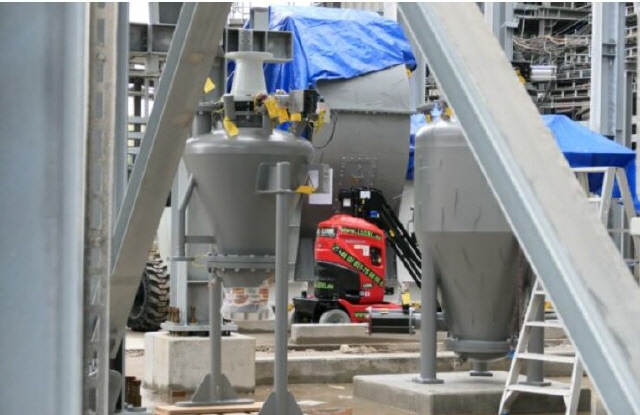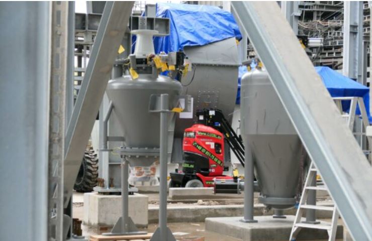 27. November 2023 Die bereits installierten Staubsendegefäße und der Saugzug unter dem Gewebefilter bilden entscheidende Komponenten der neuen Rauchgasreinigungsanlage. |