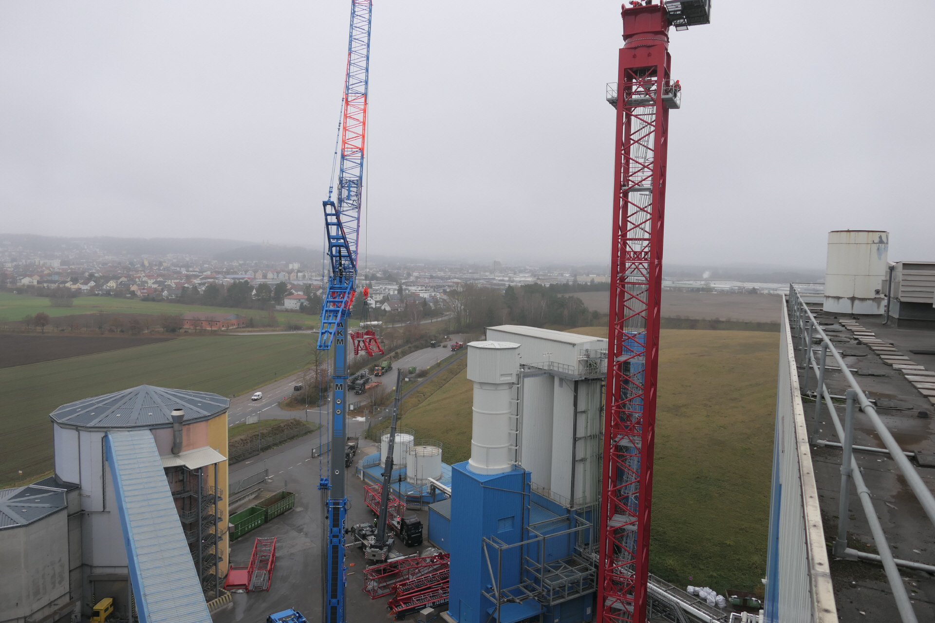 27.11.2025 Zur Montage der beiden Baukräne wurde ein 650 t Autokran benötigt, der größte den es in Bayern gibt. |