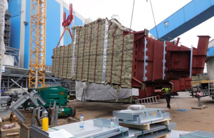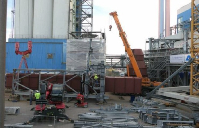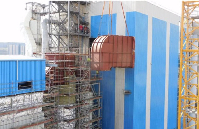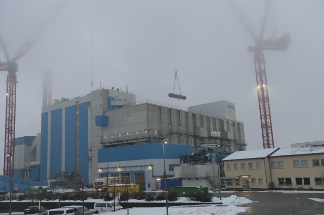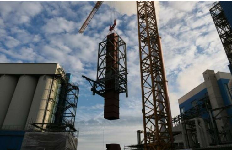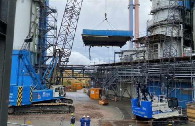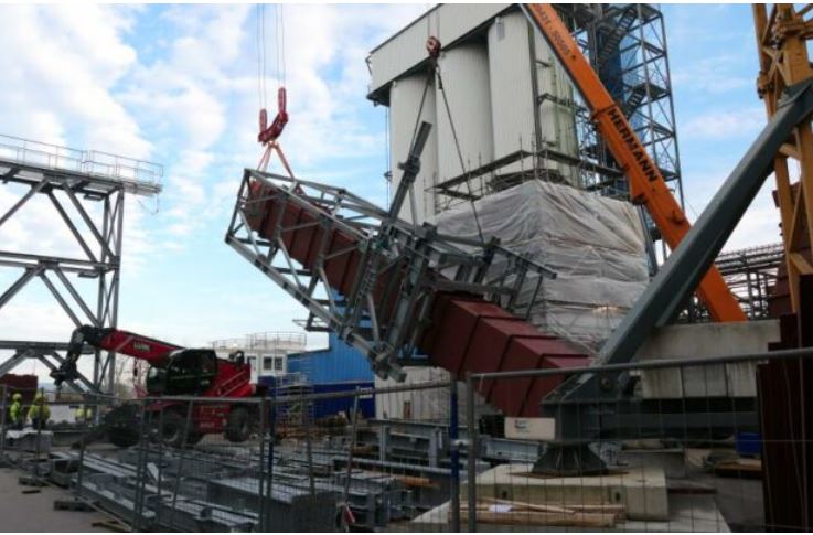 21. Dezember 2023 Anschließend erfolgte die Installation einer etwa 12 Tonnen schweren Stahlbrücke, die später den Übergang der neuen RGR zum bestehenden Kesselhaus des MKW ermöglichen wird. |