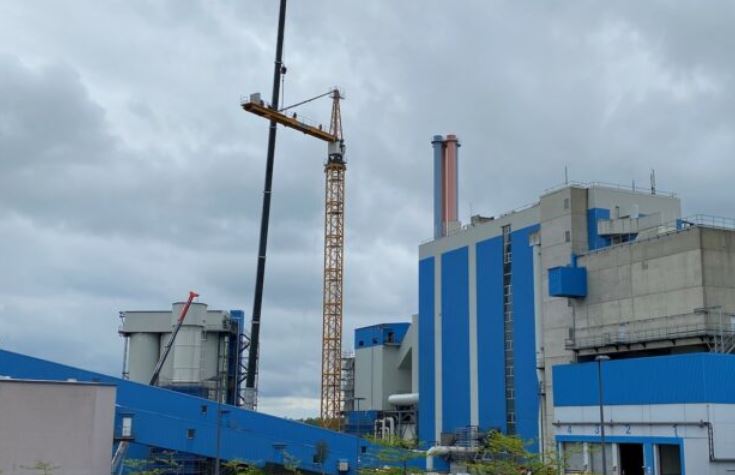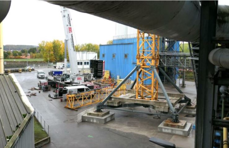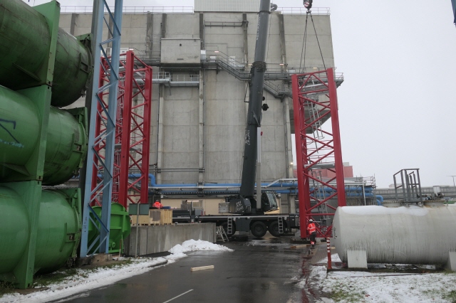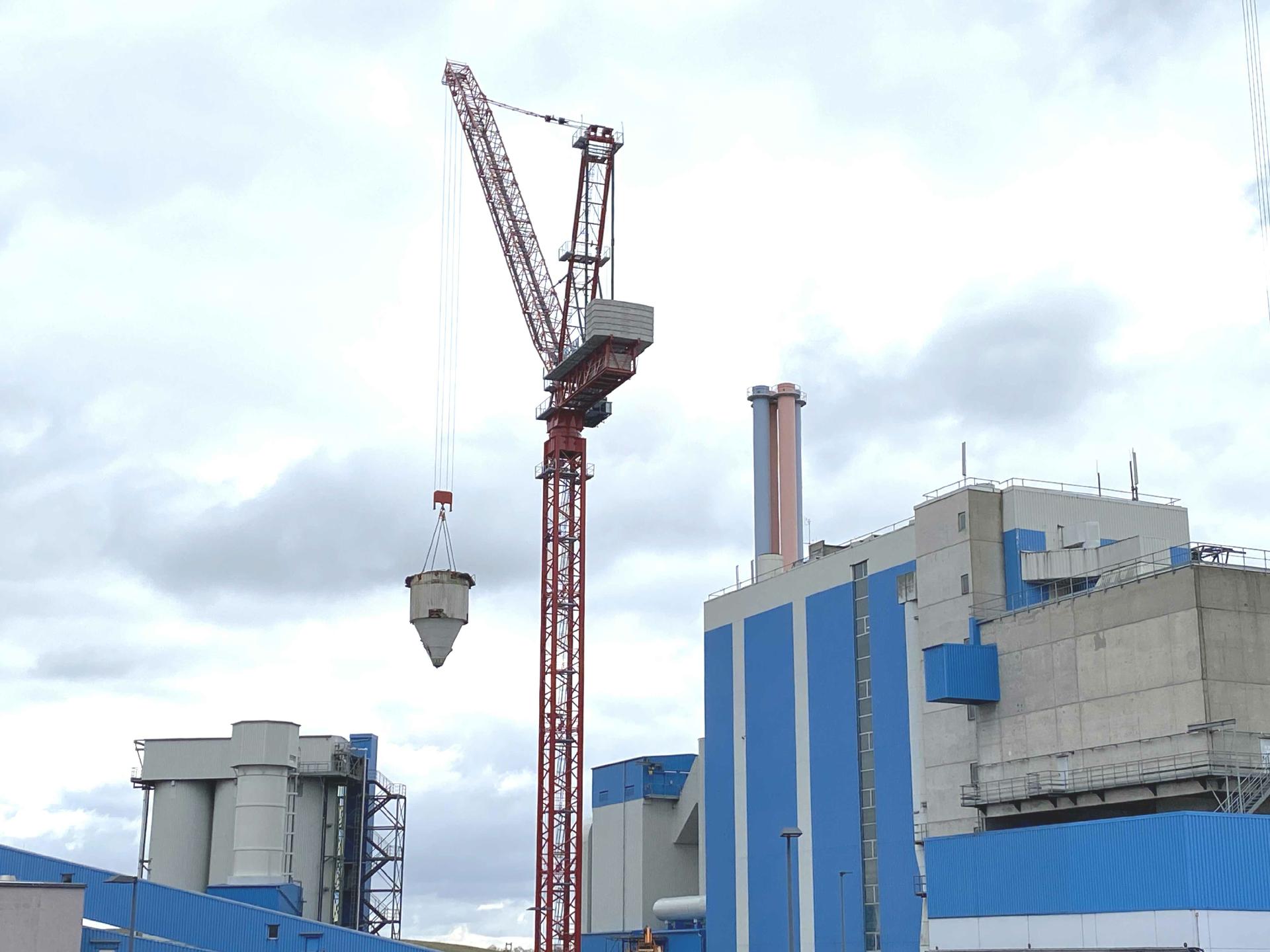 27. Oktober 2023 Zur Montage des neuen Turboreaktors und des neuen Gewebefilters der Rauchgasreinigungsanlage der Ofenlinie 4 wurde kürzlich ein 60 Meter Hochkran installiert. Die Tragfähigkeit des Krans beträgt max. 90t und die Ausladung 40 Meter. |