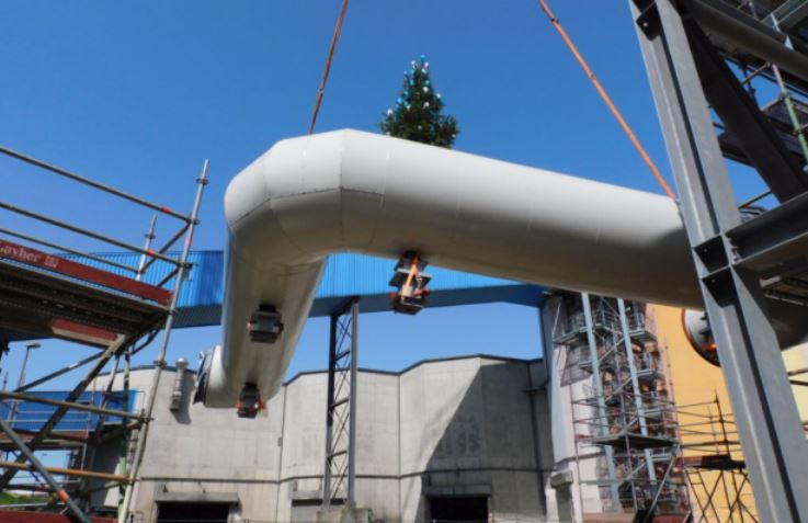 19. Dezember 2023 Kurz vor den Weihnachtstagen fanden herausfordernde Hub-Arbeiten im Rahmen des Triphönix-Projekts statt. Mit präzisen Handgriffen wurde der 31,5 Tonnen schwere und etwa 20 Meter lange Rohgaskanal der neuen RGR 4 installiert. Das Drehen des Rohgaskanals erforderte den Einsatz eines zusätzlichen Autokrans. |