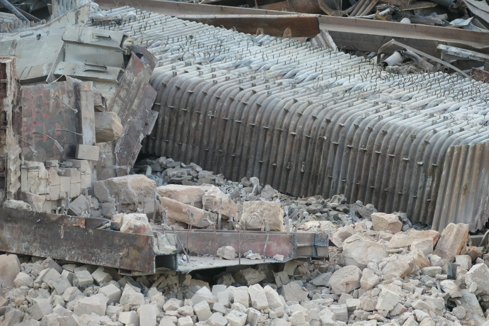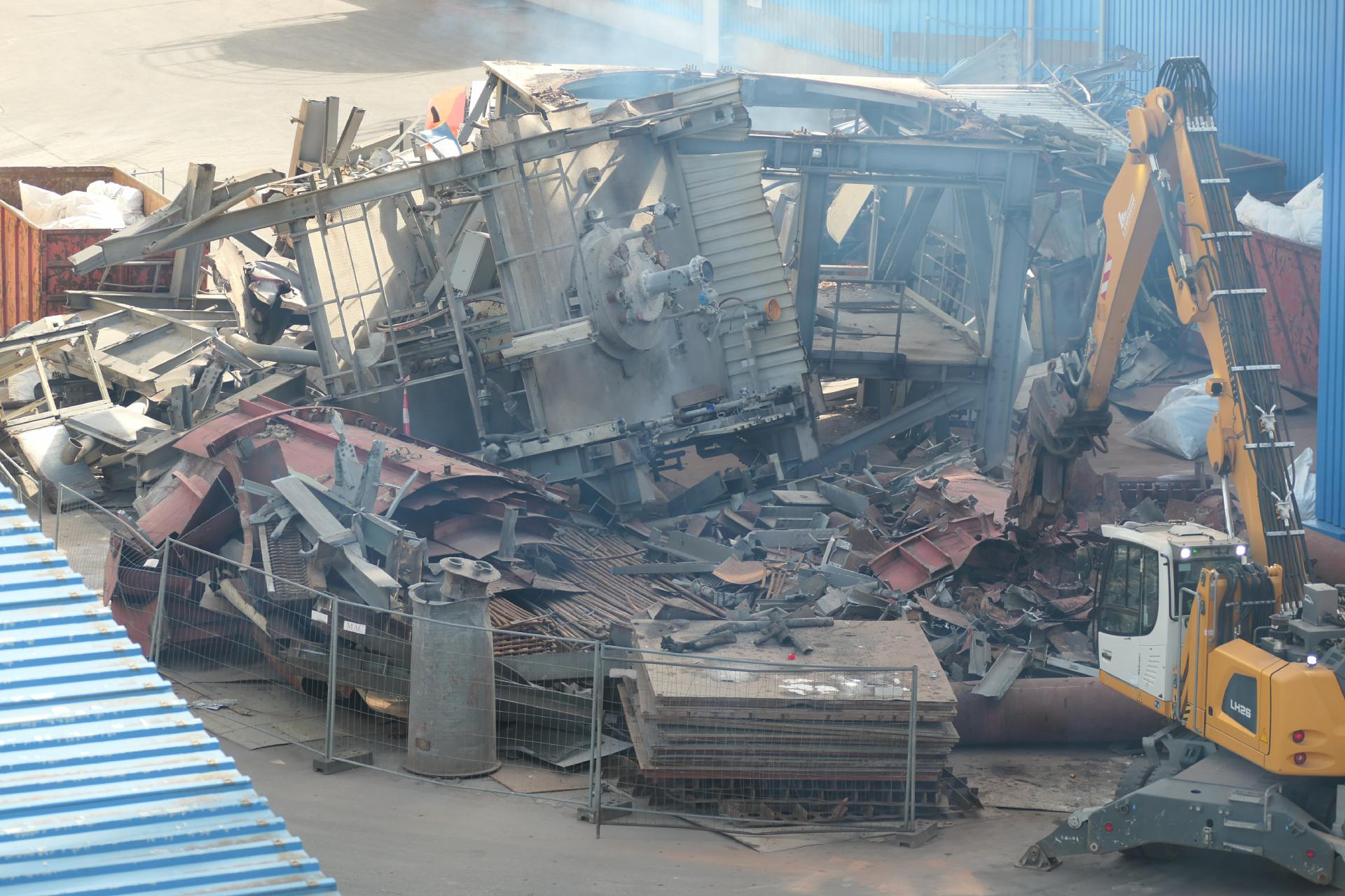 09.04.2026 Sorgfältig wird der anhaftende Bauschutt vom Metall getrennt. Hier von der Kesselausbranddecke. |