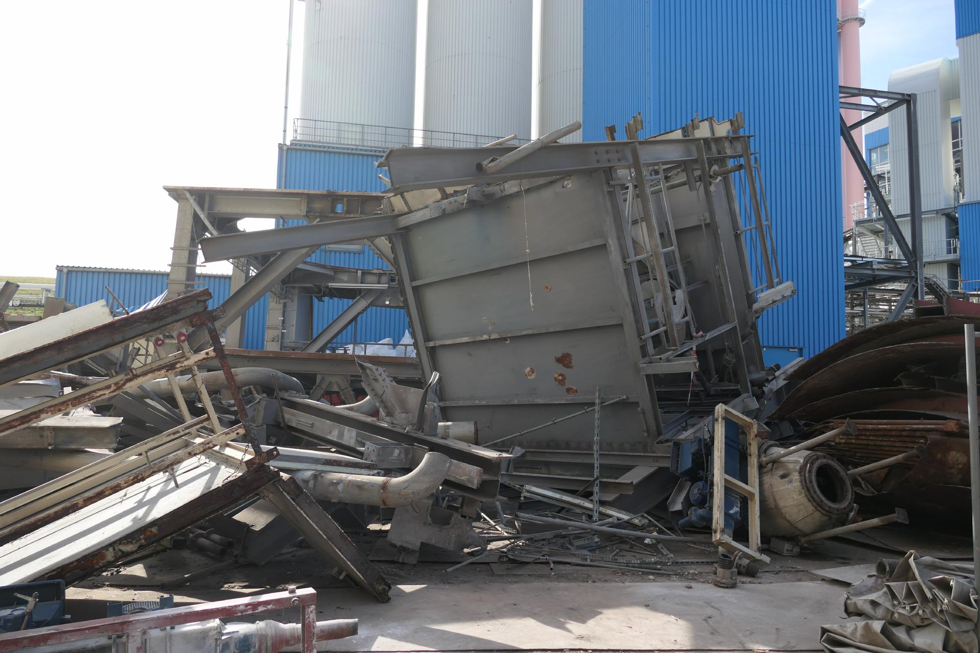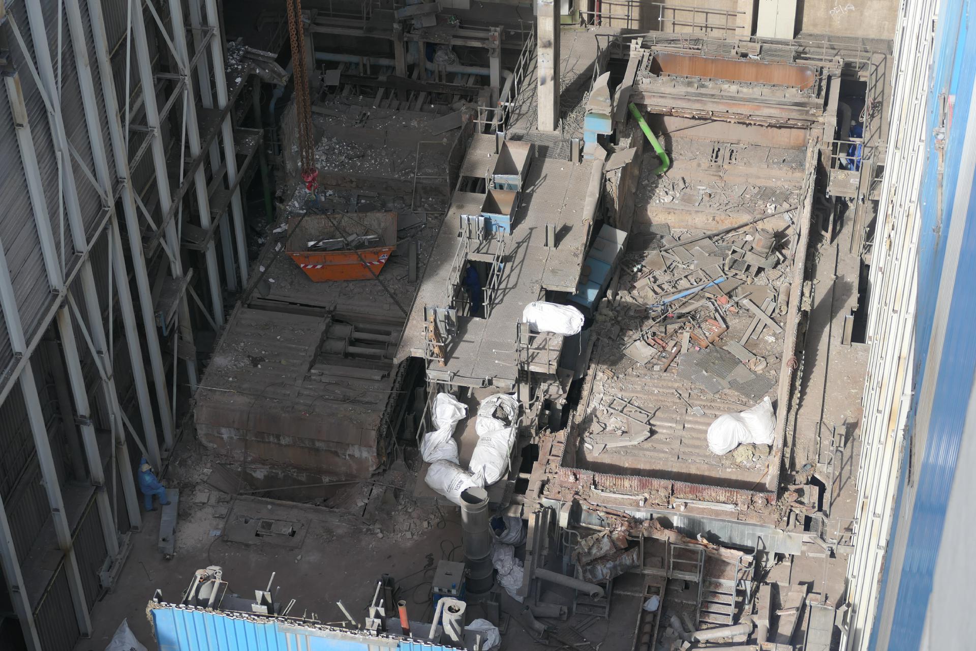 27. Juli 2023 Der Rückbau der Rauchgasreinigung der Linie 4 ist in vollem Gange. Hier wird gerade die Gewebefilterkammer demontiert. |