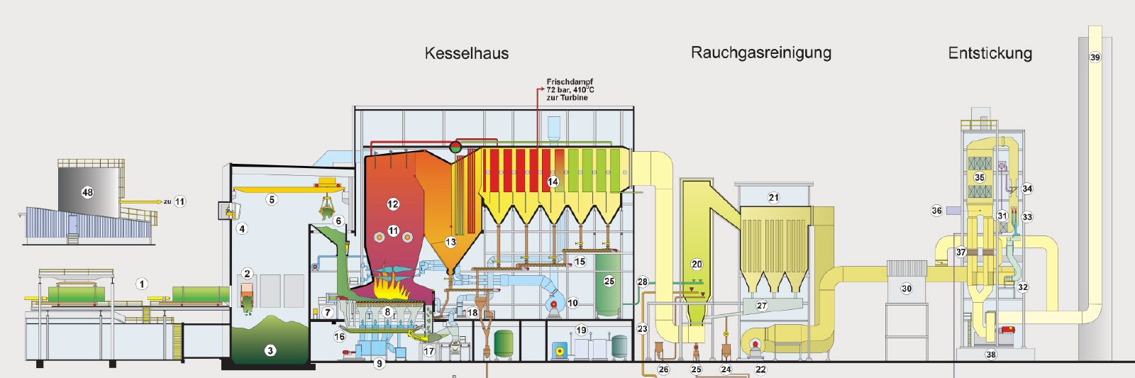 Die späteren Reinigungsstufen Entstaubung, Gewebefilter, Entstickung und Dioxinabscheidung sind nicht von den geplanten Änderungen betroffen.